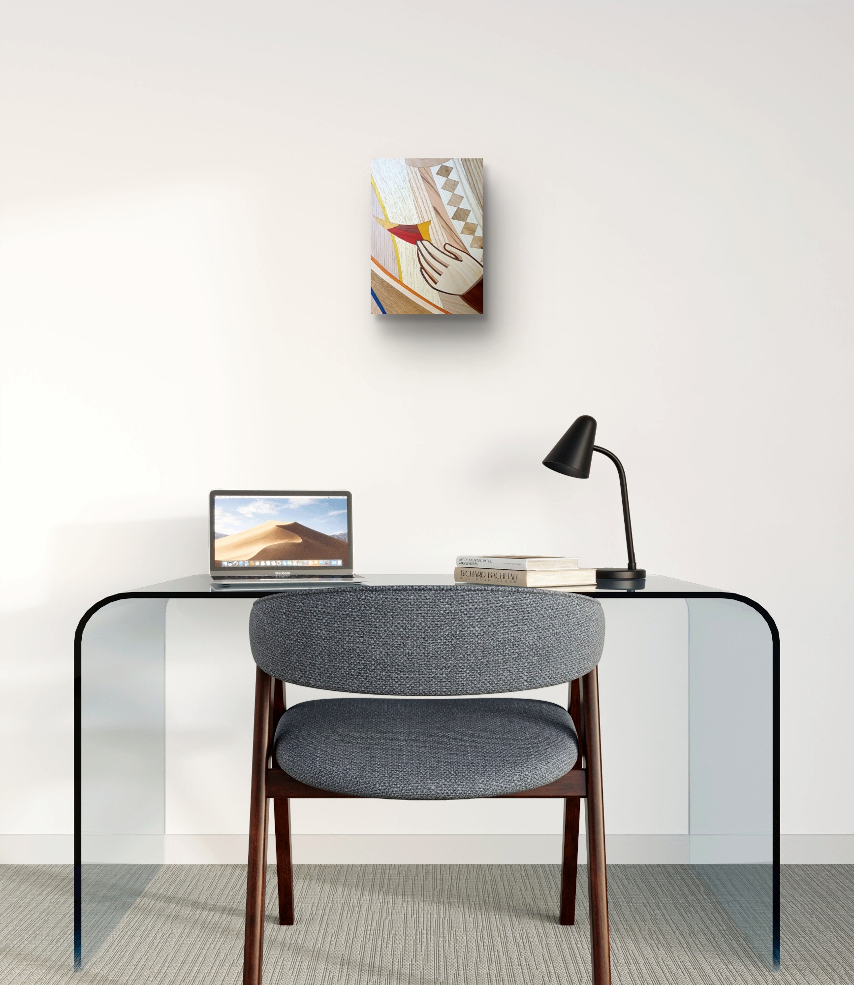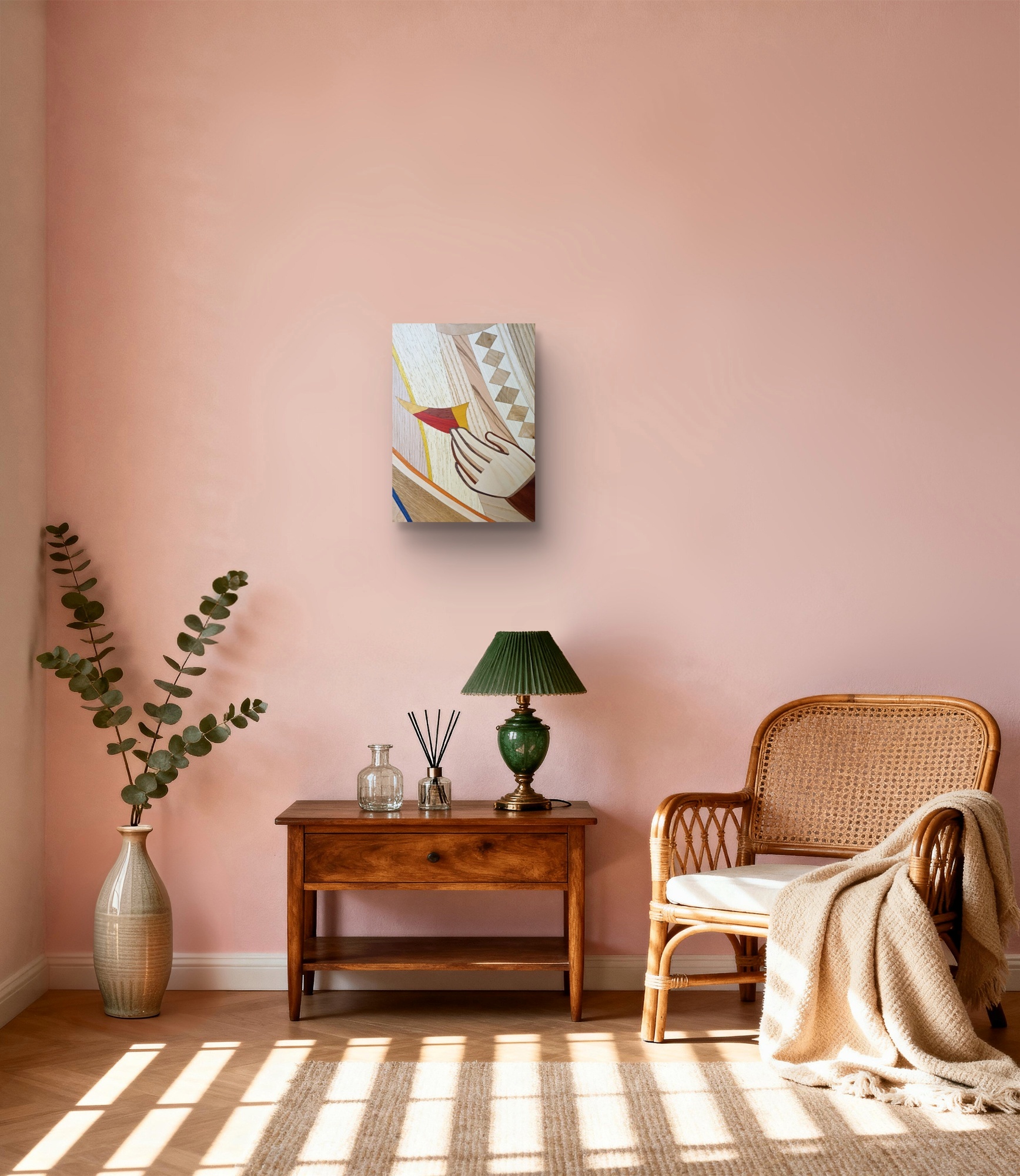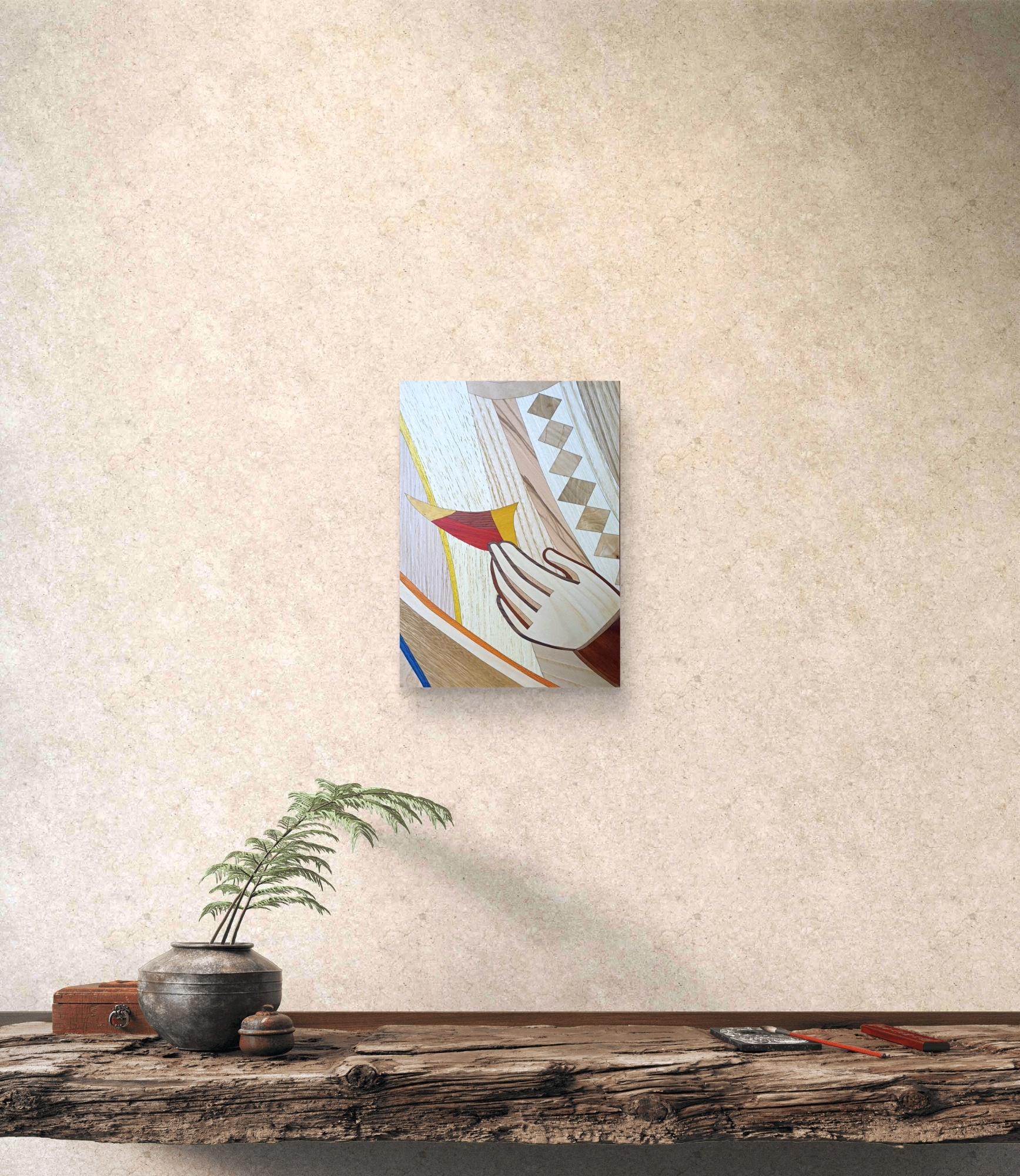 Intarsio ligneo ispirata alla scena dell’incontro tra Tommaso e il Risorto.