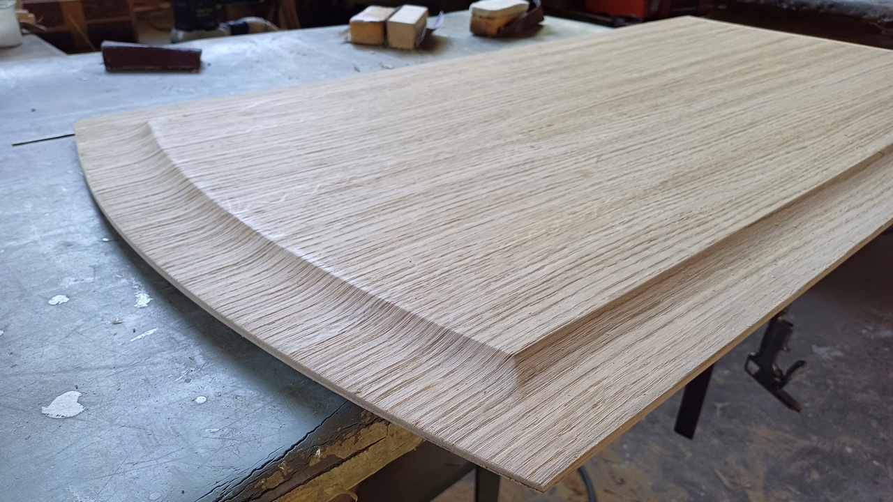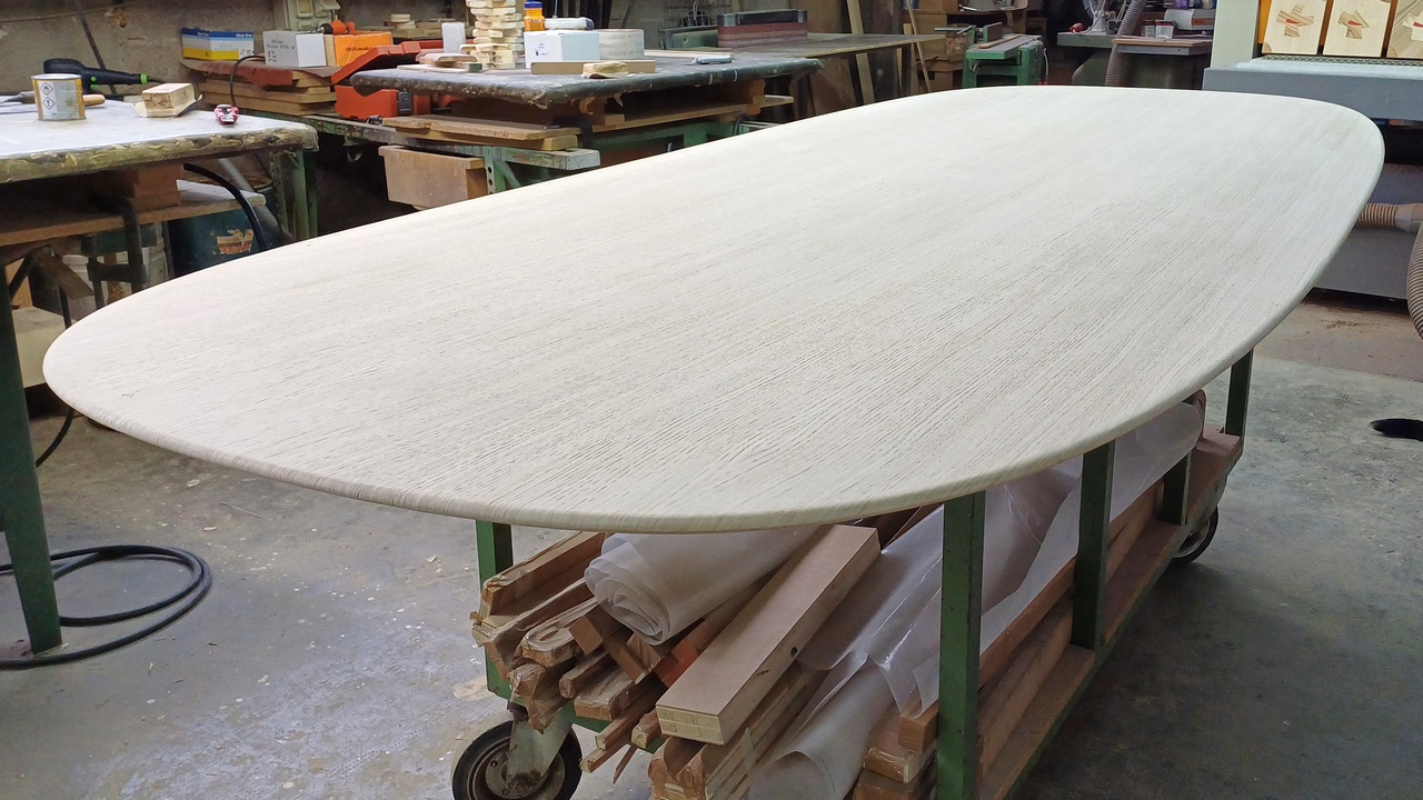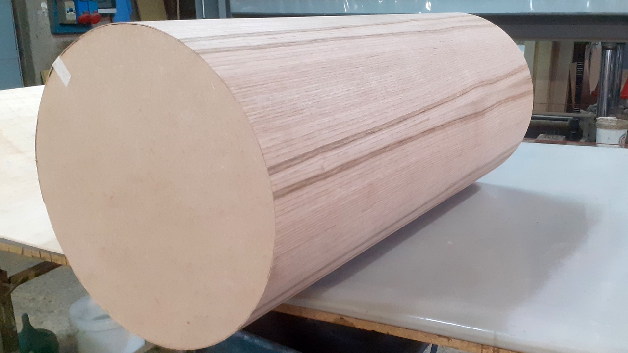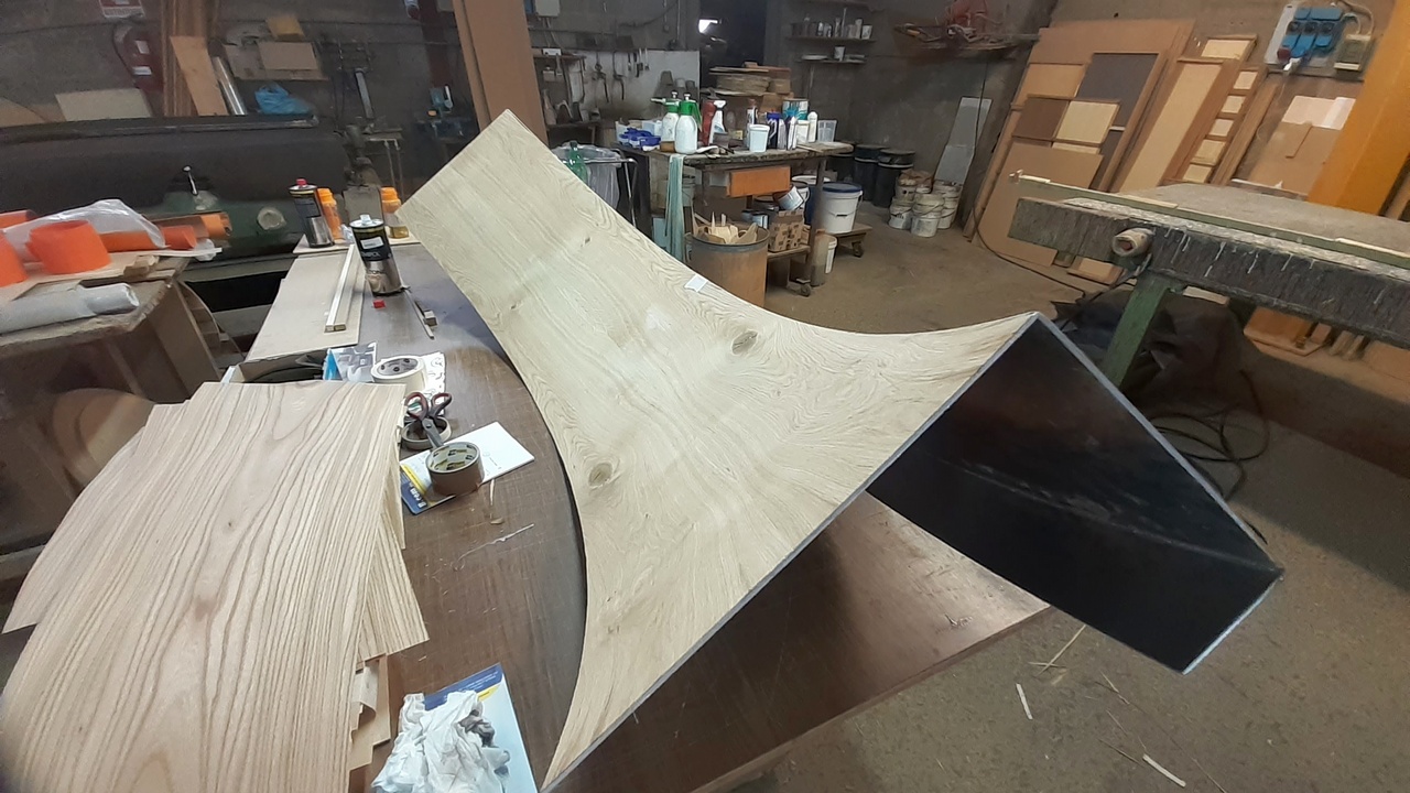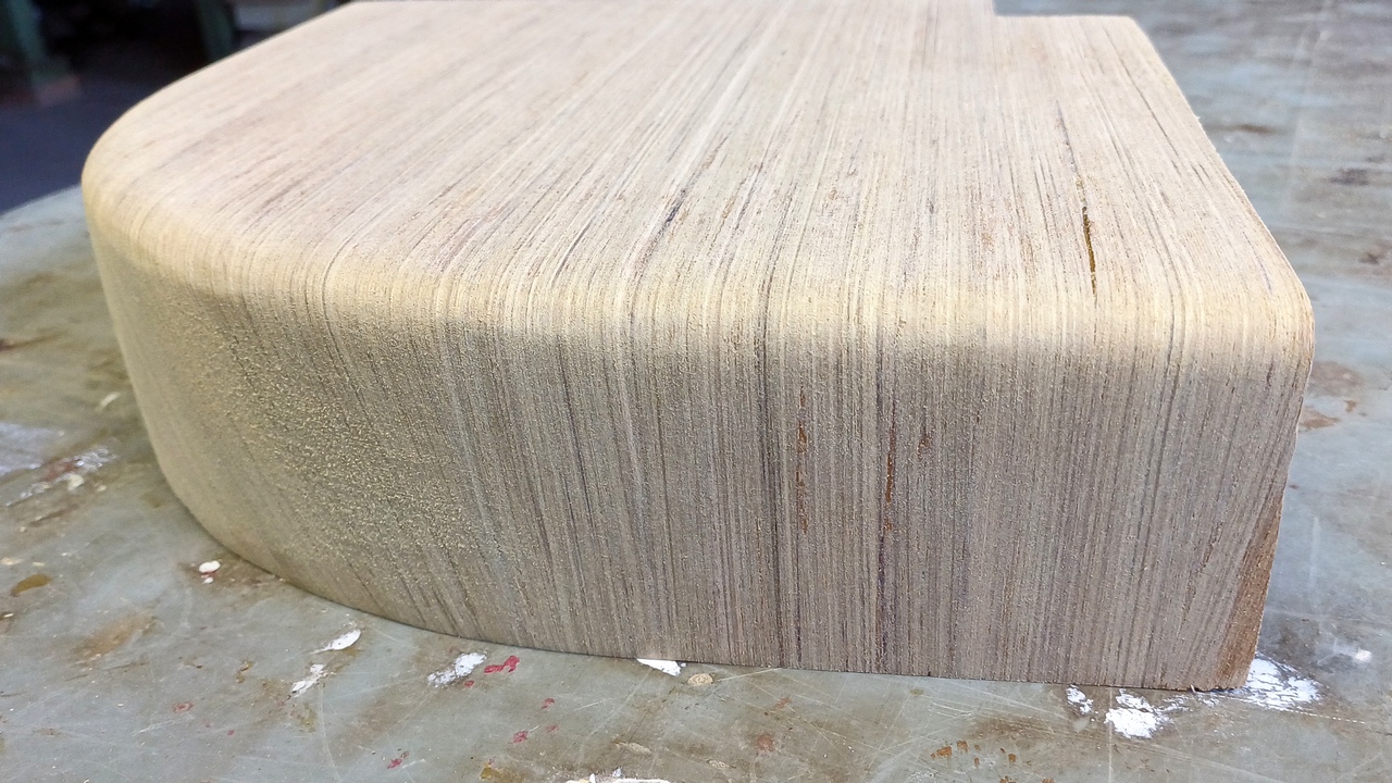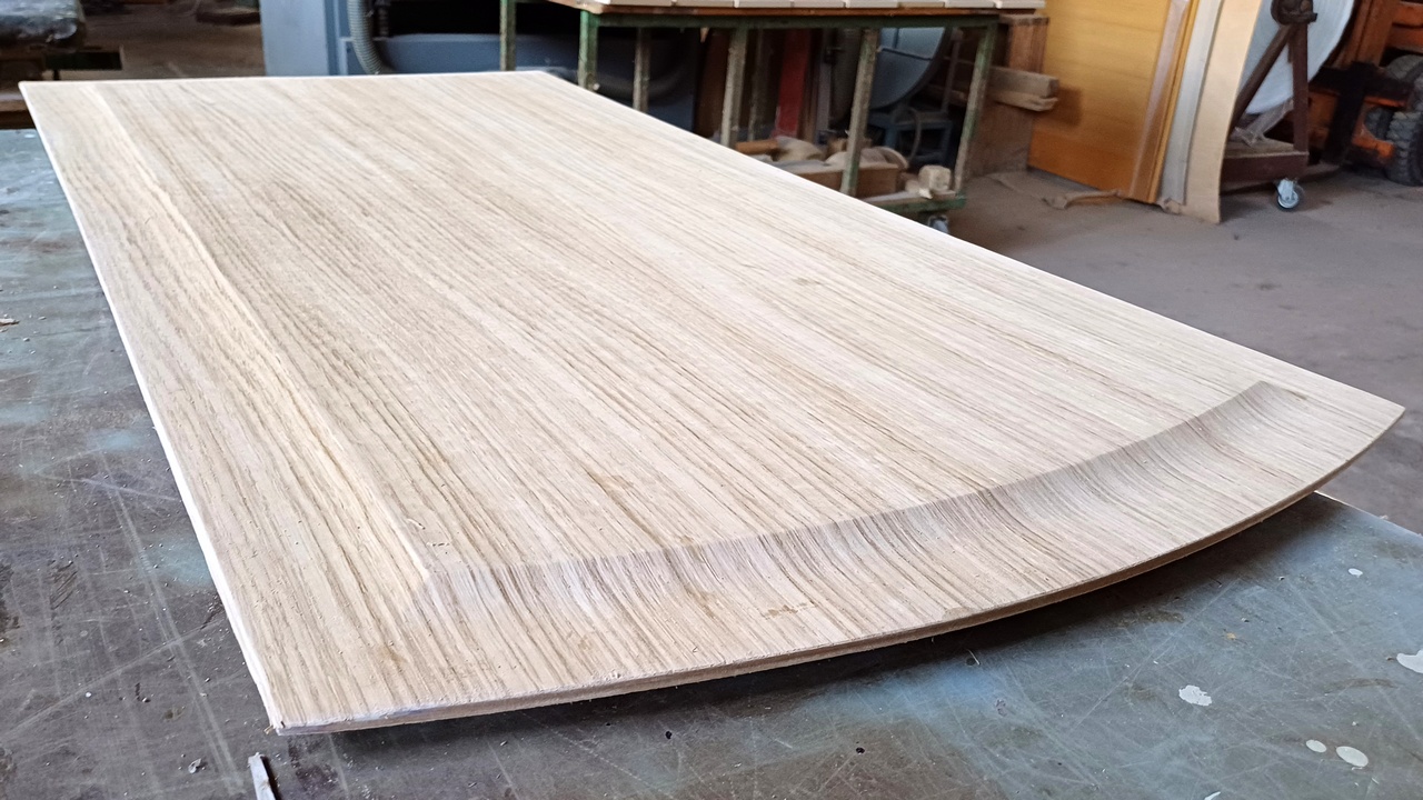 Una scelta focalizzata alla leggerezza del manufatto finale pur conservando la naturaità del legno. Il supporto di poliuretano potrà essere rivestito con piallacci sia su superfici piane che curve.